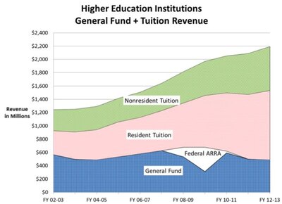 The Degree Dividend, a 2010 state report on the future of the higher education system, calculated that annual state support of $1.5 billion was needed to make the state system competitive with those in other states.