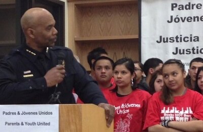 Denver police Chief Robert White encouraged the youth affiliated with Padres to continue working with all students so they understood the district’s goals and approaches toward restorative justice.