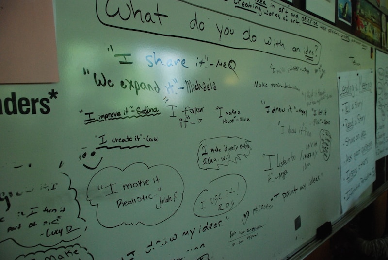 On a spring afternoon towards the close of school, he kicked off class with a group of third graders with a discussion of “what to do with an idea.” In previous classes, students had drawn what they thought an idea looked like, as a living thing, and built homes to protect their ideas.