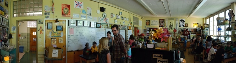 Here’s an interactive tour of Quenzer’s classroom. Hover over the black and white dots to take a closer look at the tools Quenzer uses to run his classroom (and click here to view a larger version):