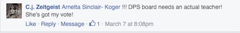 When we published a story about people eager to fill a vacancy on the Denver school board, a reader posted the following comment on Facebook about one of the hopefuls: