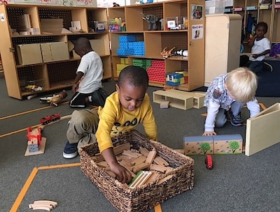 Children play in the “Bear Cubs” classroom at the Dahlia Campus preschool. (Ann Schimke)