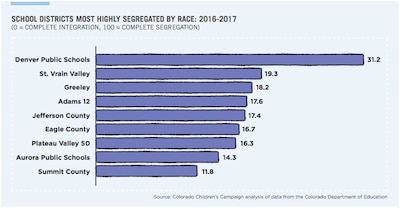 In Colorado, segregated schools aren’t unique to Denver. Suburban and rural districts, including St. Vrain Valley, Eagle County and Greeley, also have highly segregated schools, according to the KIDS COUNT report.