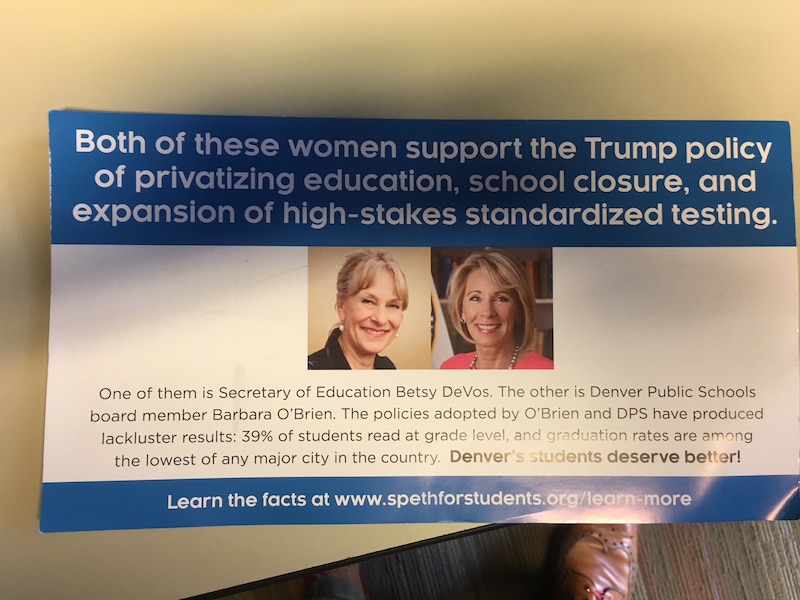 Opponents of the district’s policies signaled months ago they would seek to tie candidates who support Denver Public Schools’ reforms to DeVos, a billionaire champion of school choice. Supporters of the district’s agenda were ready with their own narrative: that their candidates would stand up to the Trump administration’s immigration and education policies.