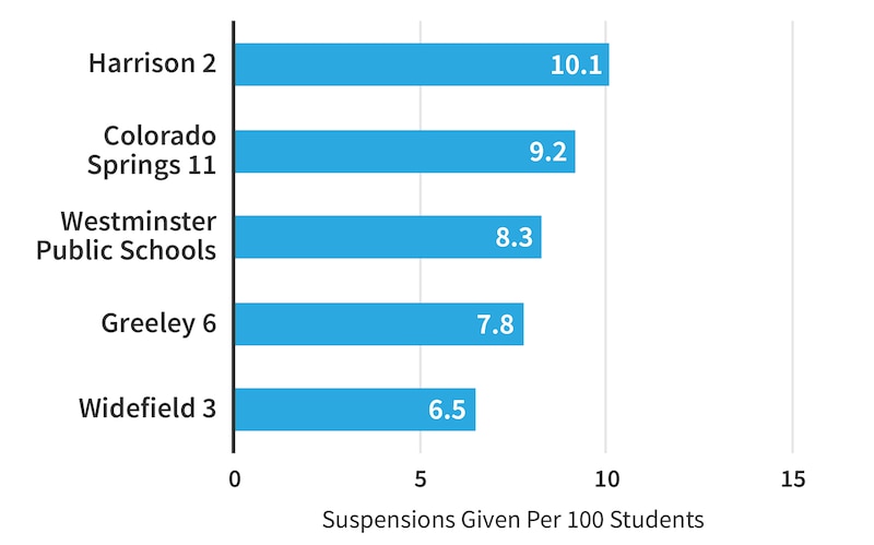 Three of the large districts that used suspension in lower elementary grades most often last year are in El Paso County: Harrison, Colorado Springs and Widefield. One of the other two is in metro Denver and the other is in Greeley.