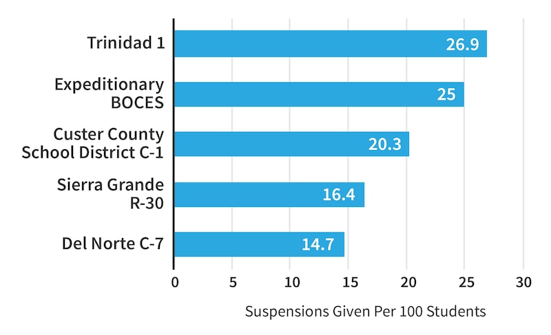 Meanwhile, about 70 rural districts suspended no students at all last year. These include a few that are around the same size as Trinidad, including East Grand, Weld RE-9, and Telluride.