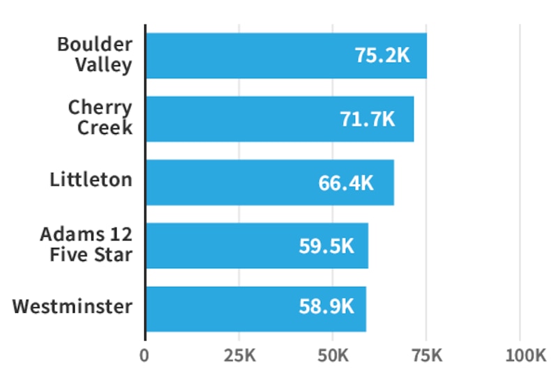 Teachers in the Cherry Creek and Boulder Valley districts have average salaries above $70,000. Many small rural districts have average salaries close to $30,000, an amount that’s hard to live on anywhere.