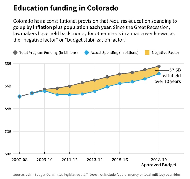 Back in 2000, Colorado voters approved a constitutional amendment that said the state had to increase K-12 education funding every year based on inflation and population. It was meant to reverse years of budget cuts in the 1990s.