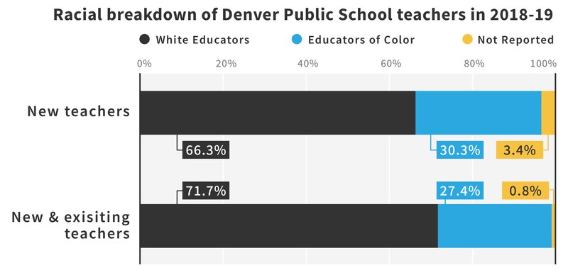 Thirty percent of the nearly 750 new teachers who will join the Denver school district this fall are teachers of color, making this year’s class of recruits the most diverse in recent history.