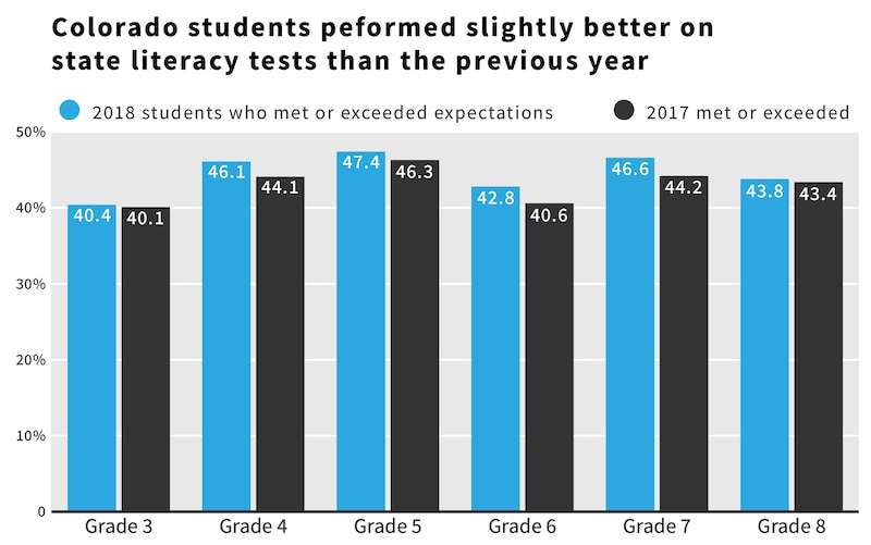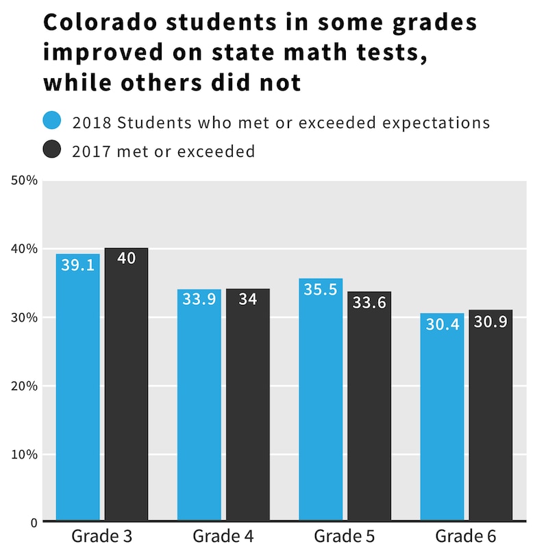 More than half of all Colorado students in third through eighth grade continue to fall below state expectations in reading, writing, and math, according to results of state tests students took this spring. That’s been the case since Colorado switched to more rigorous tests four years ago.