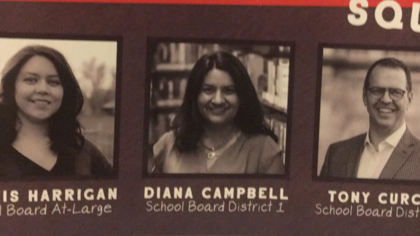 The mailer was sent by an independent expenditure committee called Students Deserve Better. It identified candidates Alexis Menocal Harrigan and Diana Romero Campbell as “Alexis Harrigan” and “Diana Campbell,” a tactic the candidates said erases their Latina identities.