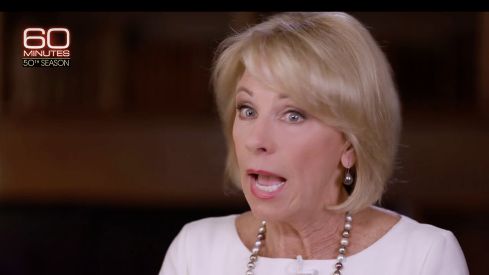 DeVos: Well, in places where there have been, where there is, a lot of choice that’s been introduced — Florida, for example — the studies show that when there’s a large number of students that opt to go to a different school or different schools, the traditional public schools, actually, the results get better, as well. Stahl: Now, has that happened in Michigan? We’re in Michigan. This is your home state. DeVos: Yes, well, there’s lots of great options and choices for students here. Stahl: Have the public schools in Michigan gotten better? DeVos: I don’t know. Overall, I can’t say overall that they have all gotten better. Stahl: The whole state is not doing well. DeVos: Well, there are certainly lots of pockets where this — the students are doing well and — Stahl: No, but your argument that if you take funds away that the schools will get better is not working in Michigan where you had a huge impact and influence over the direction of the school system here. DeVos: I hesitate to talk about all schools in general because schools are made up of individual students attending them. Stahl: The public schools here are doing worse than they did. DeVos: Michigan schools need to do better. There is no doubt about it.