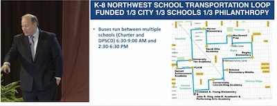 He told a school board finance committee in March the he had thought the bus route would cost the district $25,000 in total but soon learned that the cost would actually be $25,000 per school — up to $125,000 if all five district schools planned for the inaugural loop were included. The plan also involves five charter schools.