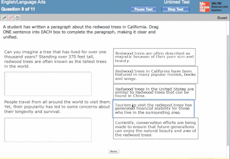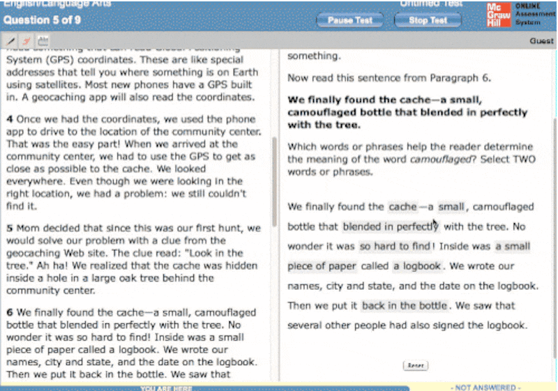 Generally, the test-taking process on test creator CTB-McGraw Hill’s samples is pretty straightforward. You can move back and forth between questions, and the controls are labeled. However, parents, students and teachers might want to take note of a few things before they jump in: