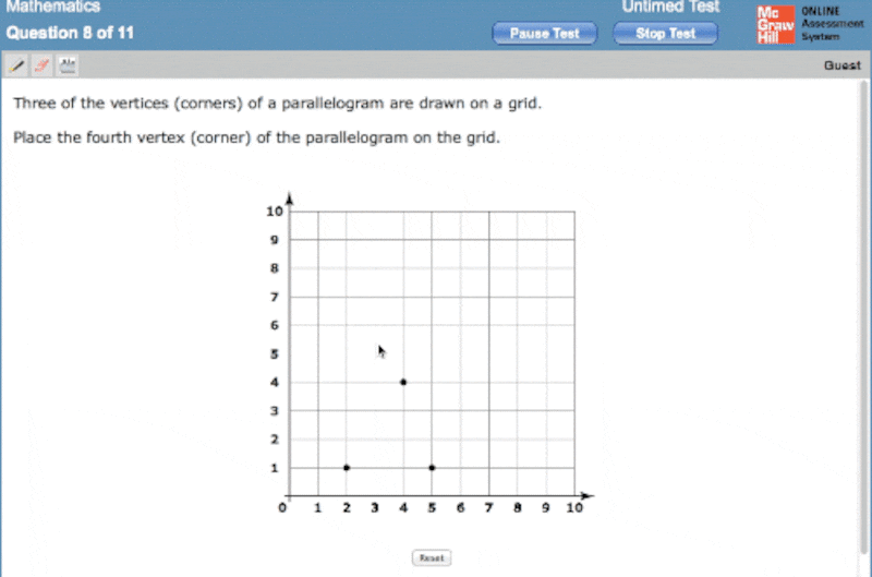 - Some of the actions required by the math questions are fairly precise — clicking or dragging small points on a grid or using points to create lines. A little practice, however, should help students get the hang of it.