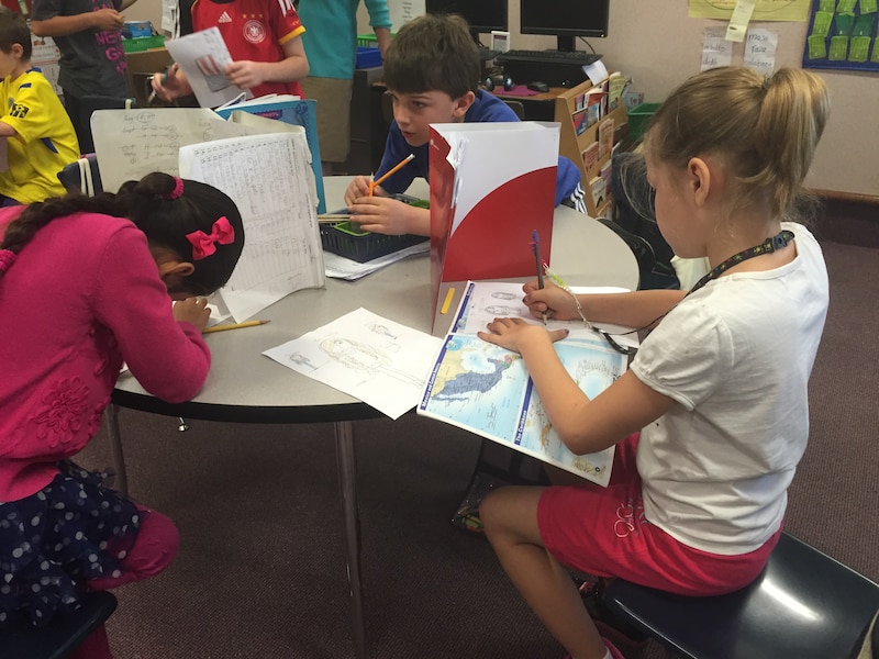 Younger students spend more time speaking exclusively in Spanish. In third grade, that changes to 70 percent. By fourth grade, the day is split 50-50, Spanish and English.