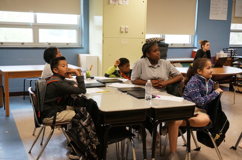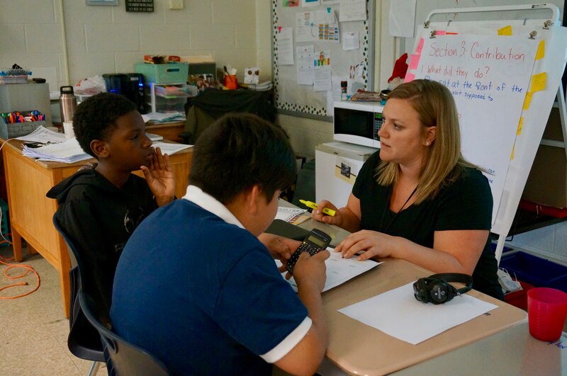 Abby Campbell, who is in her first year teaching, has 31 students in her fourth grade class. Her students run the gamut from those who are far below grade level to those who are above it. Close to half of them are English language learners, and about five have special education plans, she said.