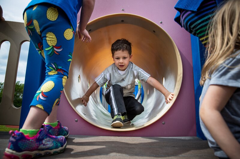 When one kid tries to crawl up the slide, while others are trying to fly down it, they have to work it out among themselves. They’re learning that both can’t happen at the same time, so they must negotiate who goes first.