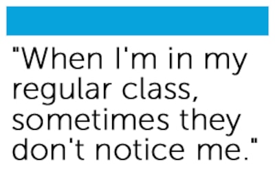 “When I’m in my regular class,” he said, “sometimes they don’t notice me.”