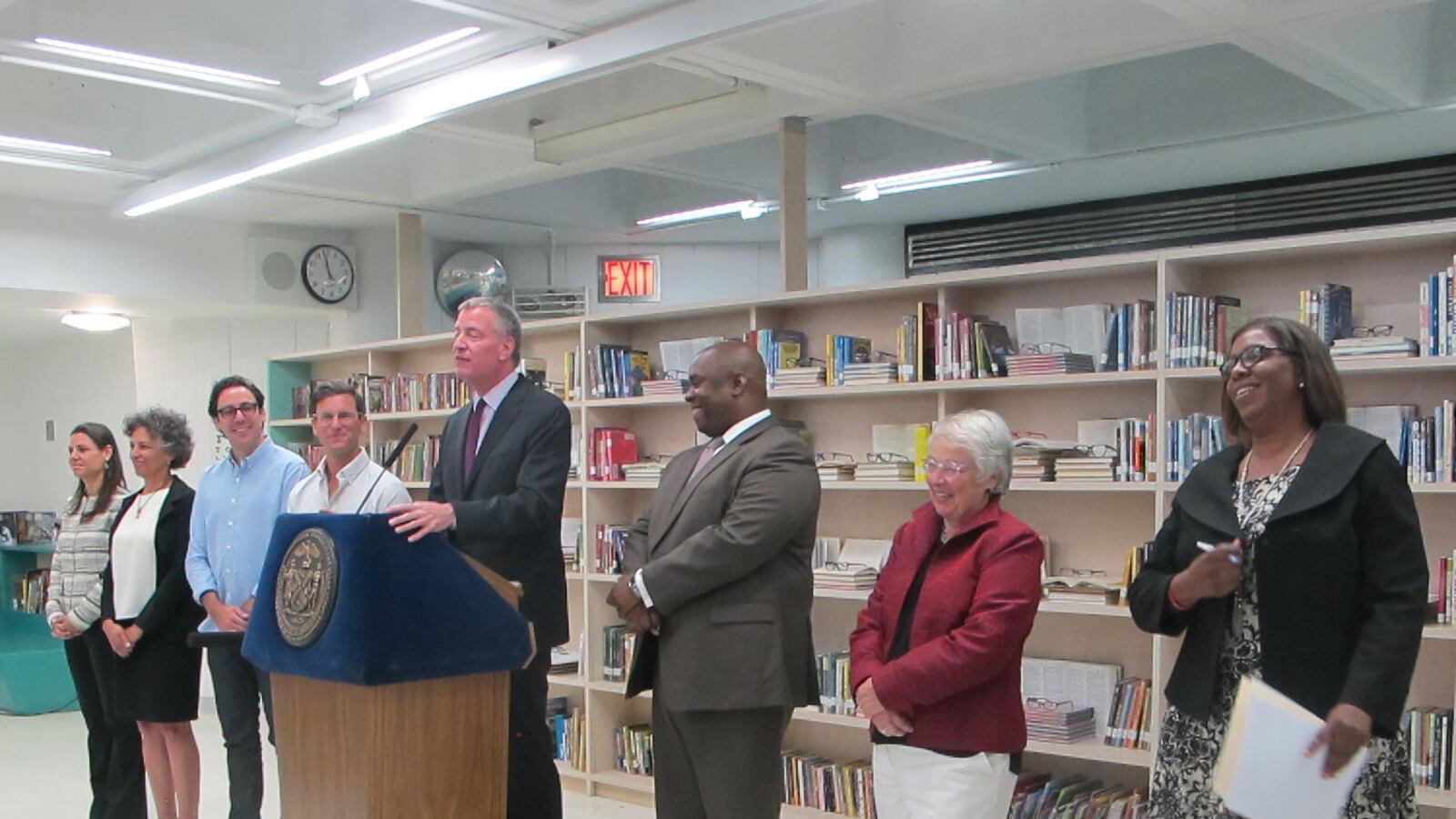 “That’s why our community schools concept is so powerful,” de Blasio said. “Because rather than being narrow and saying we’re just going to teach kids what’s in these books, for example, we’re going to think about what will allow this whole child to move forward.”