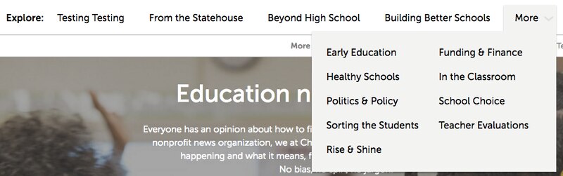 And some of you care deeply about specific issues in education and want to see the latest news on those topics, no matter where it’s taking place. You should explore our stories by topic, using our revised navigation.