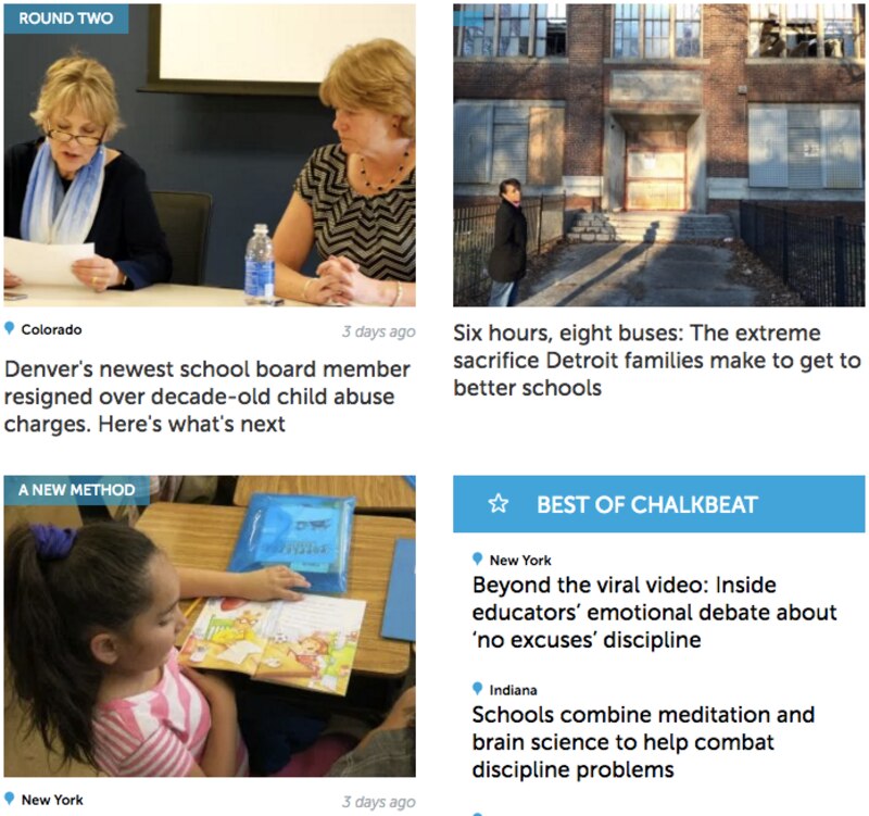 That last option — a national page that showcases stories from all our Chalkbeat locations — is also brand new. We created it to help readers connect local developments to the big picture in educational equity. (You can also follow Chalkbeat on Facebook and Twitter to find the most interesting developments from across our locations.)