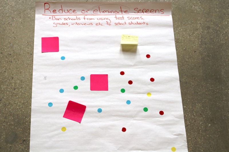 After the discussion, audience members — who included people who work in schools and education-oriented nonprofits, along with parents — voted on ways to make the admissions process more fair.