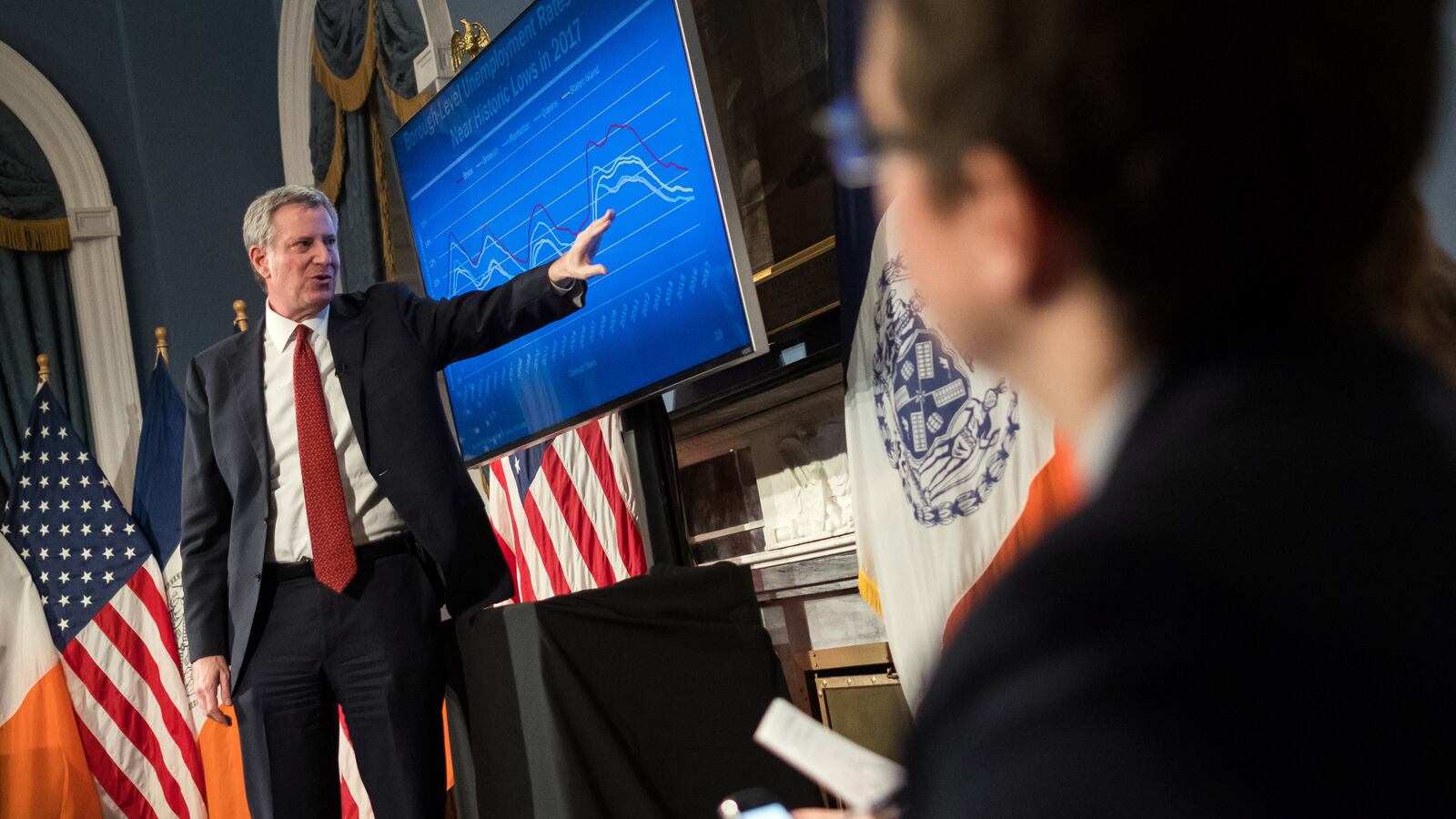 The bigger threat to the city’s budget will come from Washington, with up to $700 million at risk, according to city projections. In response, the mayor touted $900 million in savings across fiscal years 2018 and 2019 through a partial hiring freeze and agency and debt-service savings.
