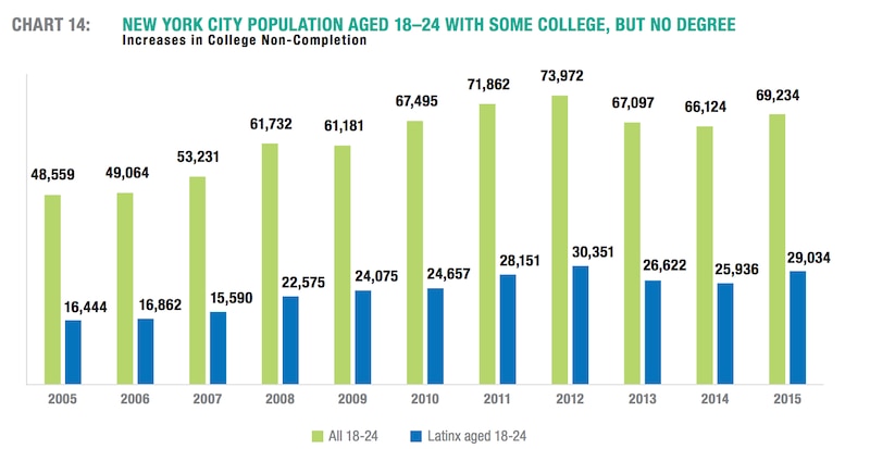 5. College readiness rates have increased, and more young adults are going to college. But many of them are going to college without earning degrees, potentially leaving them in debt. The number of young adults “who have started college but left before completing any type of degree has grown from under 50,000 in 2005 to nearly 70,000 today,” according to the report.