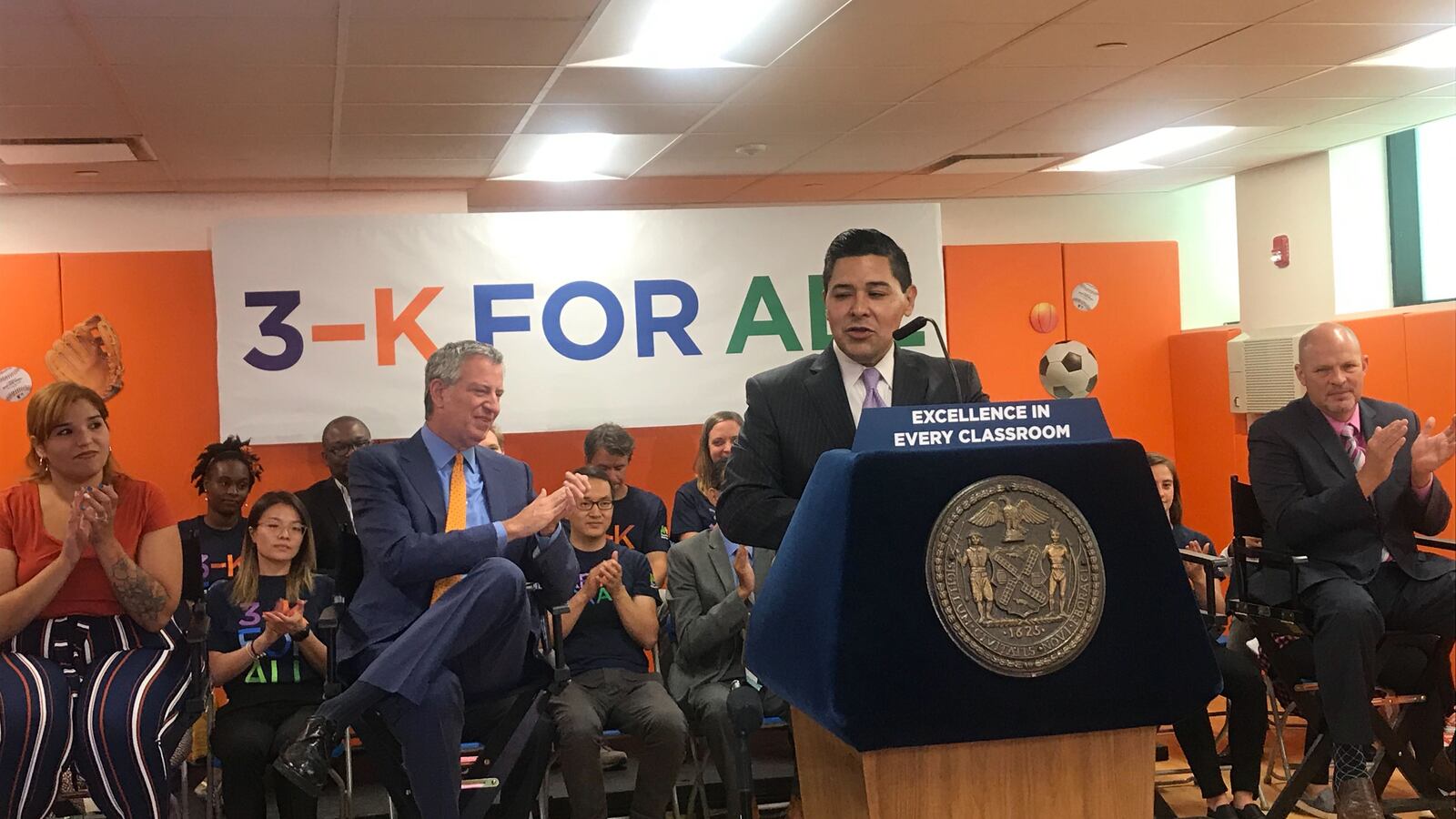 “If we get to a point when we see changes that can get implemented at the beginning of the new school year … if we think we’re ready, we’ll move,” he told reporters gathered at a pre-K center in Staten Island.