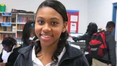 Colonial Middle eighth grader Taylor Matthews took the practice writing assessment online last week. (Tajuana Cheshier/ Chalkbeat TN)