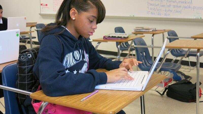 Colonial Middle school student takes the practice online writing assessment last week. (Tajuana Cheshier)