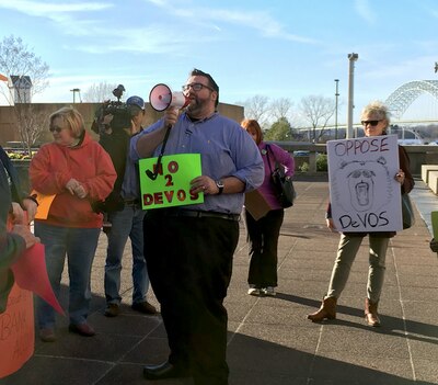 The Memphis demonstration was organized by a group of education and civil rights organizations calling themselves the Tennessee Organizers Against Betsy DeVos. They include the United Education Association of Shelby County, Tennessee PTA, Statewide Organizing for Community eMpowerment, Tennesseans Reclaiming Educational Excellence, and Black Lives Matter Memphis.