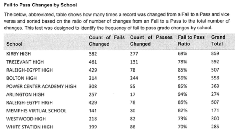 The firm’s analysis concluded that “additional investigation around grade changes is warranted,” prompting Shelby County Schools to extend the firm’s contract to dig deeper.