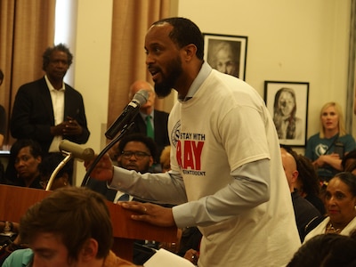 Most of the people who spoke during the public comment period asked the board to “stay with Ray,” a slogan matching T-shirts worn by several attendees.