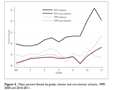 Look around an average charter school. The difference may be too small to be perceptible, but you might notice a few more girls than boys.