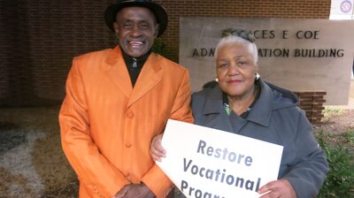 “If they take away the vocational program, if they change the zones – why wouldn’t students go elsewhere?” said 87-year-old Evelyn Taylor, the president of Northside’s PTA. Taylor and a few dozen protesters stood along Summer Ave. with signs protesting the closings before the meeting.