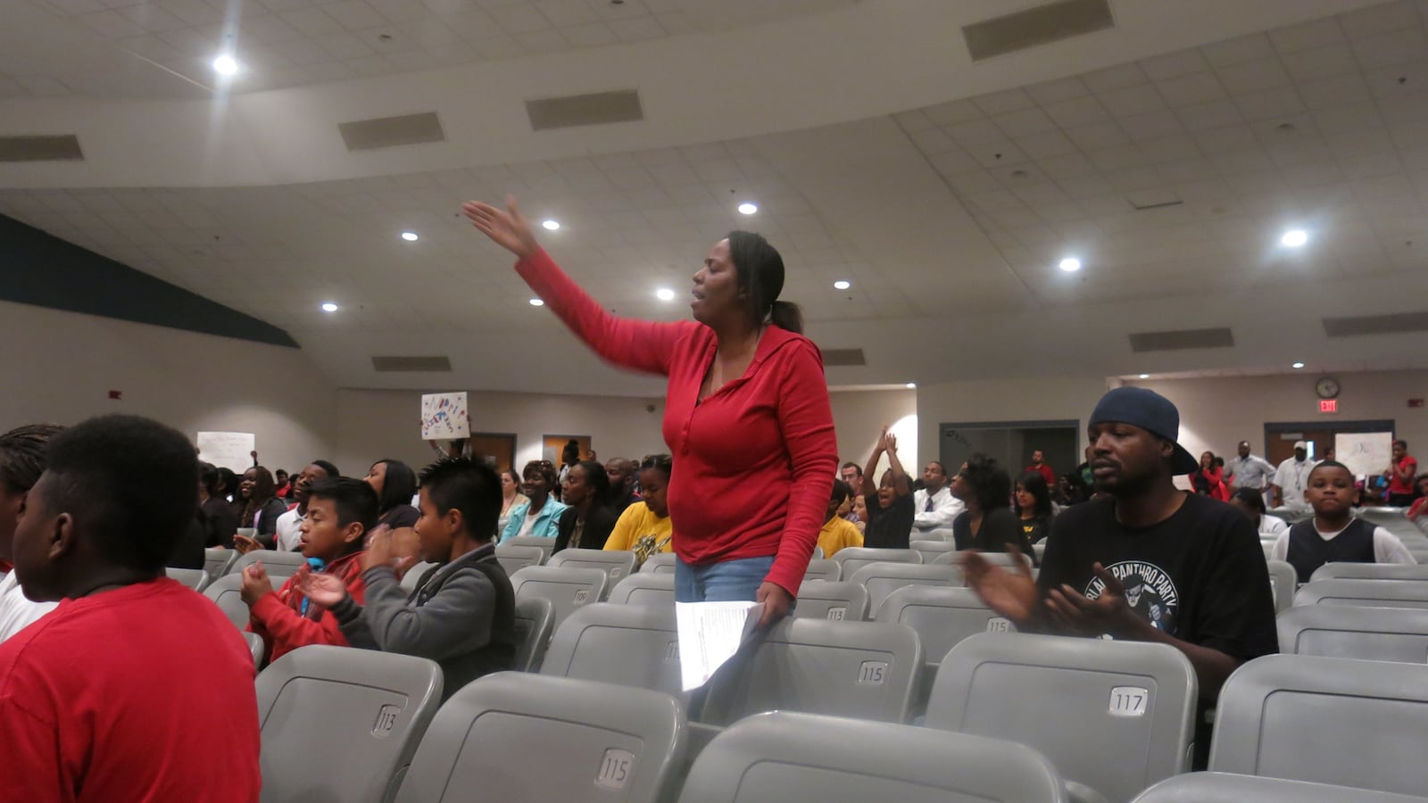 Members of the crowd at Raleigh Egypt said attempts at taking over schools was not only ineffective and destructive, but amounted to a scheme to make money off children, a charge officials flatly denied.