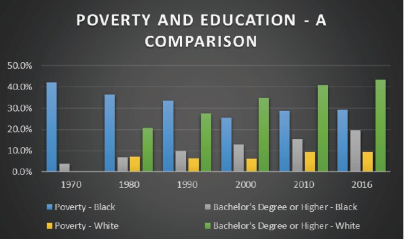 The rise of black residents completing high school corresponded with lower poverty rates in the county until the turn of the century, when a college degree became a more important indicator of future wealth, the report said.