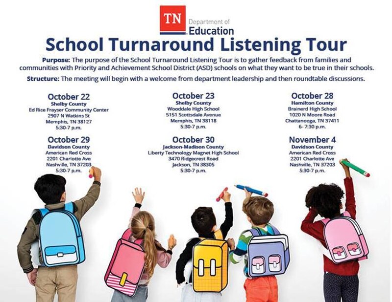 State Education Commissioner Penny Schwinn’s team is coming to Memphis on Tuesday and Wednesday to seek feedback from people in and around the Achievement District, the state’s takeover district for low-performing schools. (She will also be traveling to Chattanooga, Jackson, and Nashville. For dates and times, go here).