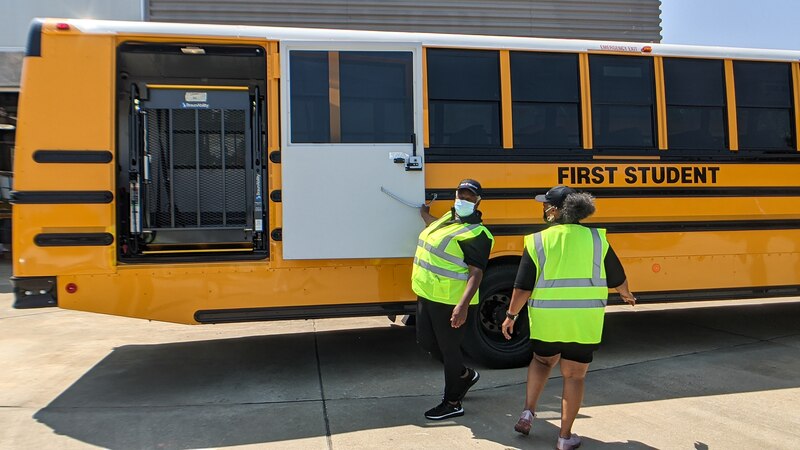 Buses will have hand sanitizer and masks for students who need them because masks are required. Workers will also sanitize buses each time one returns to the lot.