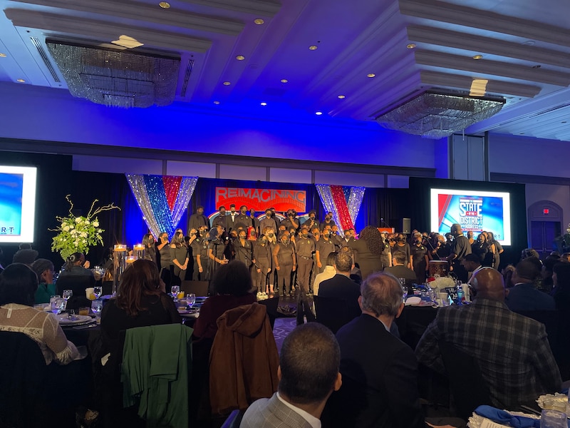 “This is not out of our reach … We have the recipe to be stronger together,” he told the crowd of hundreds of district staff, community leaders, school board members, and other elected officials. “The business of education is your business. It’s everybody’s business. We must make education our priority investment together.”
